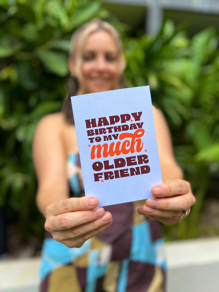 A funny birthday card for that friend who's a little (or a lot) older than you! Perfect for gifting a laugh and celebrating their special day with a laugh.