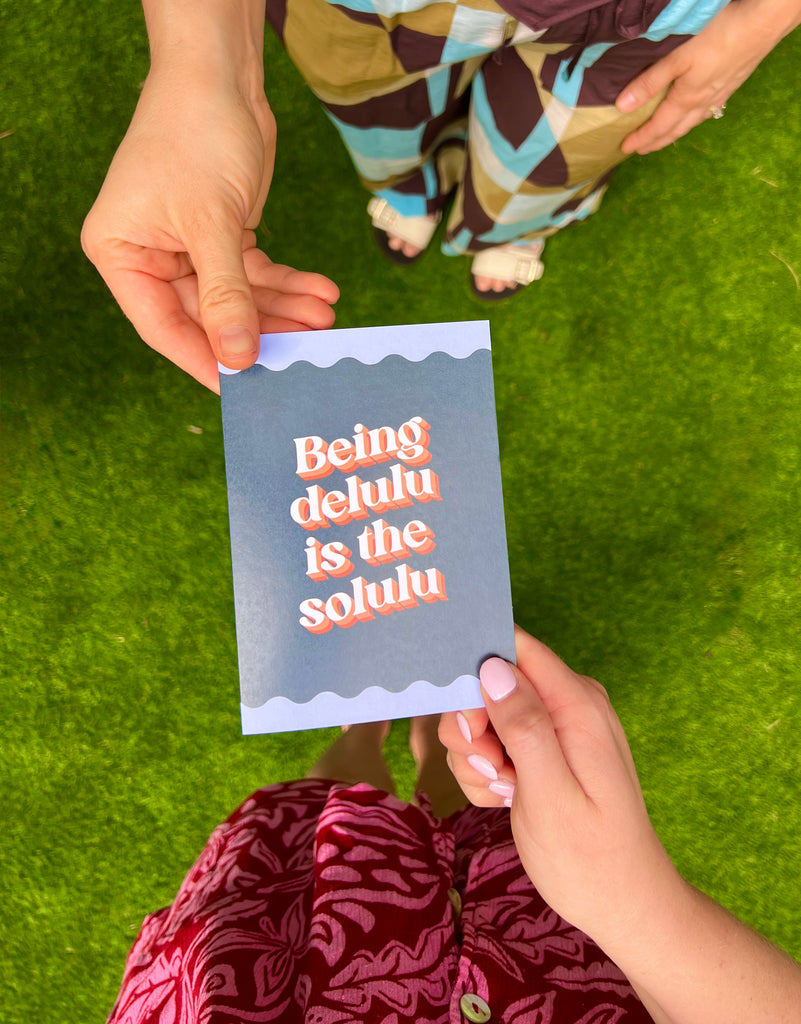 Looking for the perfect card to add a splash of fun to your special moments? Bad on Paper’s greeting cards are packed with cheeky charm and witty messages, like this one 'Being delulu is the solulu,'